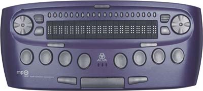 The ALVA MPO offers all the cool features of cell phones and personal digital assistants seamlessly integrated with features for blind and visually impaired users. With 20 braille cells, an 8-dot Braille keyboard, a high quality speech synthesizer, and ALVA's Smart-ControlTM user interface, the MPO is unique in design and functionality. Other key features include: