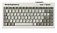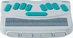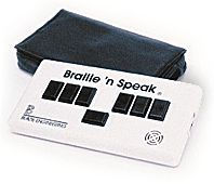 This versatile notetaker gives you the combination of speech with a standard typewriter style keyboard. At two pounds, and about the size of a legal size sheet of paper, the durable Type 'n Speak lets you input and edit directly into the memory and instantly read back the information through the internal speech synthesizer at the press of a single command. It has complete word processing capabilities including a spell checker. The built-in Braille keyboard gives you the option of using a six-key Perkins-style input mode to enter information in either Grade 1 or Grade 2 Braille. | |