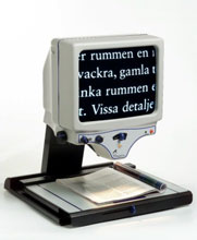 Closed Circuit TeleVision (CCTV) systems come in a wide variety of shapes and sizes, designed to meet an individual's needs. From compact, hand-held magnifiers to full-size units with full motion tables, these devices can magnify from 2 times to 16 times! Features may include reverse video, line markers, and masking, computer compatibility or a separate camera unit for maximum flexibility. We have selected three of the leading manufacturers to feature here. They represent a range of styles available but if you are looking for a specific model from another manufacturer, call! For more information on the three featured manufacturers, please visit: Black & White Models: